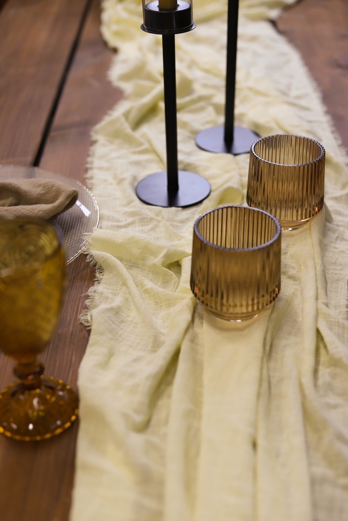 Unsere Musselin Tischläufer werten eure Festtafel optisch auf. Der Stoff ist locker und leicht und somit perfekt für die Tischmitte oder zur Dekoration von Traubögen. Unsere Läufer passen farblich perfekt zu unseren Musselinservietten und Leinenservietten und können deshalb super kombiniert werden.